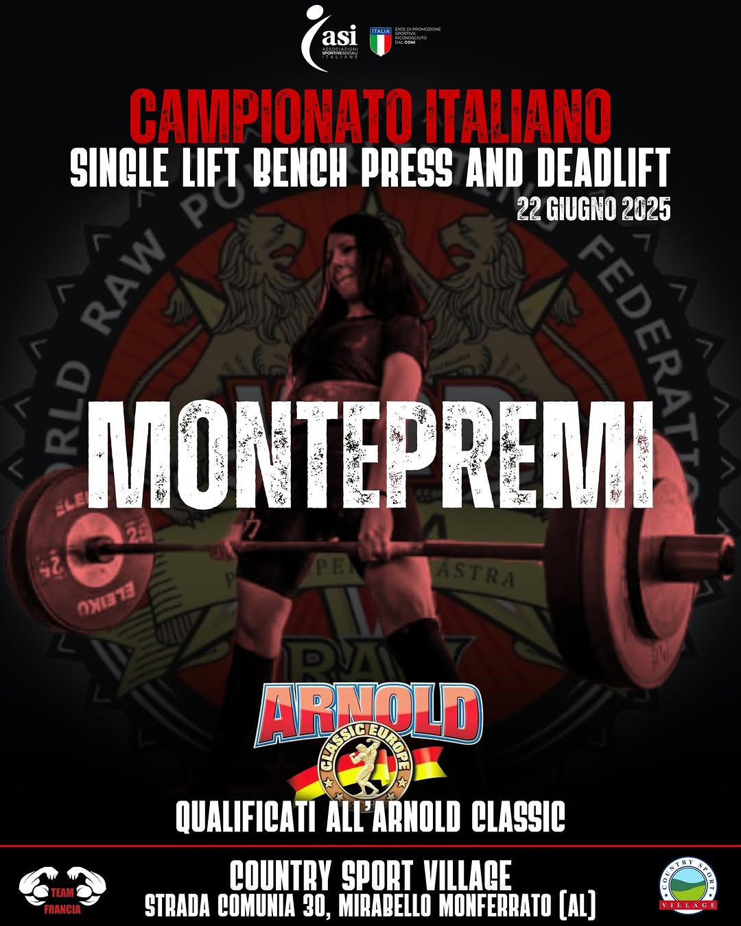 Come anticipato, il Team Francia e il @countrysportvillage ospiteranno il Campionato Italiano, evento ufficiale targato WRPF Italia, che avrà anche un’importante validità come qualificazione per l’Arnold Classic! 💥
