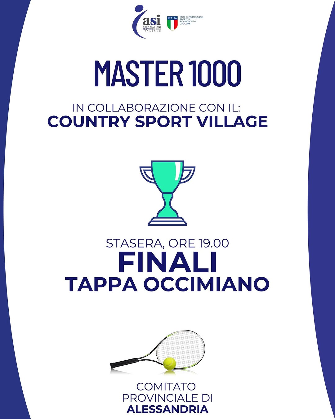 Vi aspettiamo stasera alla finale della prima tappa del Master 1000 targato ASI, comitato provinciale di Alessandria. 🏆
